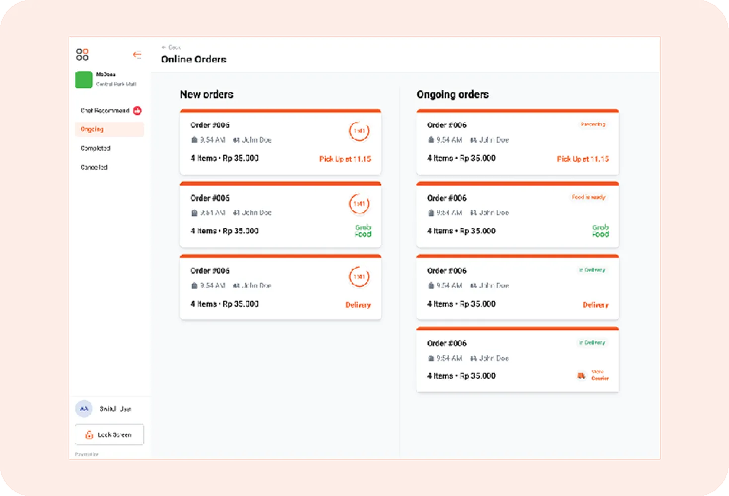 Pesanan dari GrabFood, GoFood, dan ShopeeFood langsung masuk ke sistem POS Anda tanpa perlu banyak perangkat.